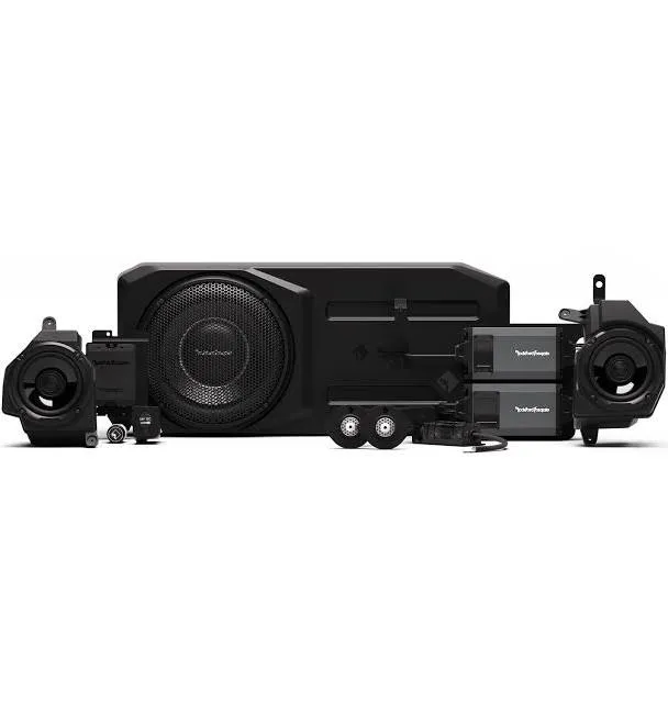 Rockford Fosgate 24WRNGLER-STG3 accessory - Complete audio system for Jeep Wrangler, includes speakers, subwoofer, and amplifiers - Black finish, rugged design, optimized for vehicle integration.