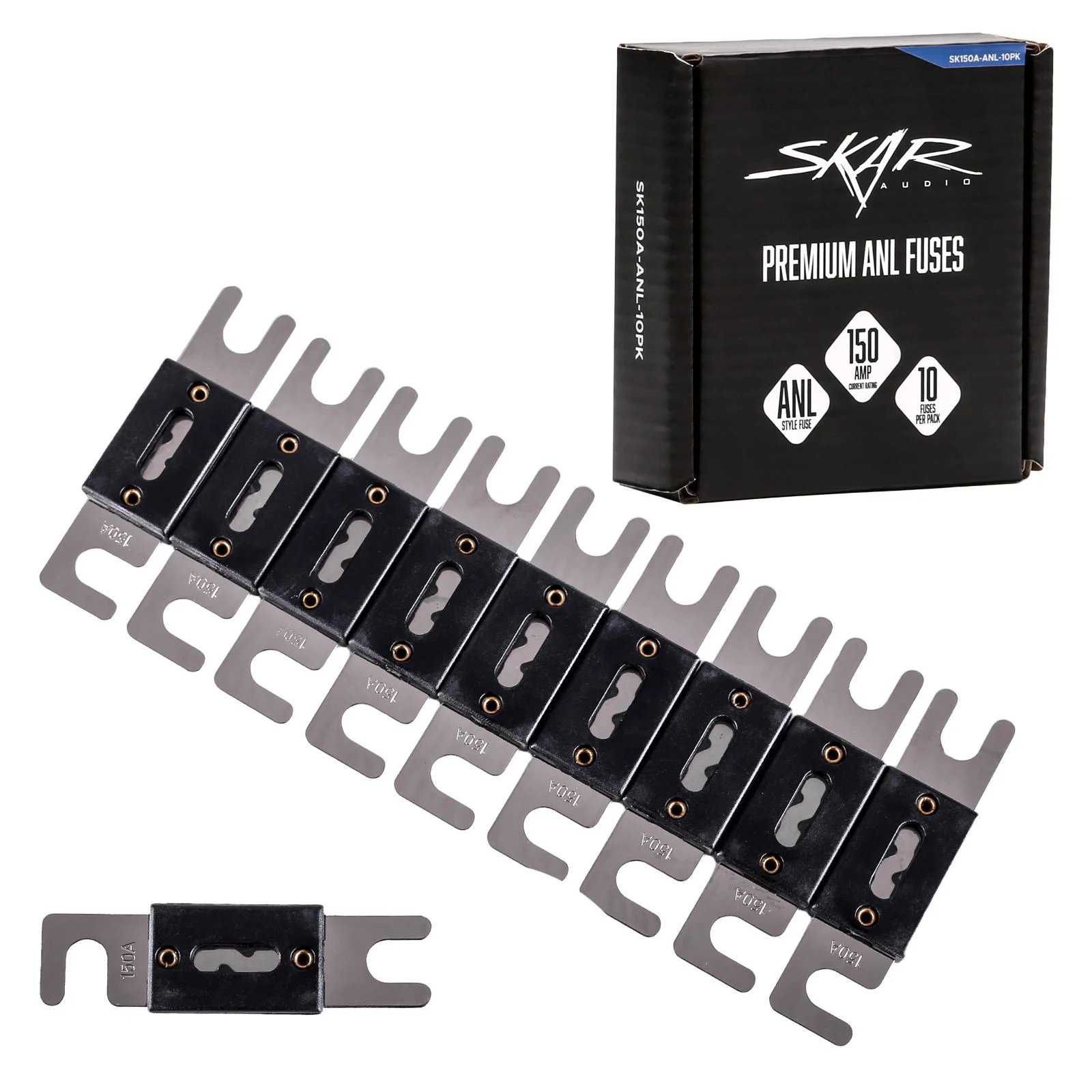The Skar Audio SK150A-ANL-10PK | 150 Amp ANL Style Fuses (10-Pack) is a car audio equipment made by Skar Audio. View full specifications and where to buy on this page.