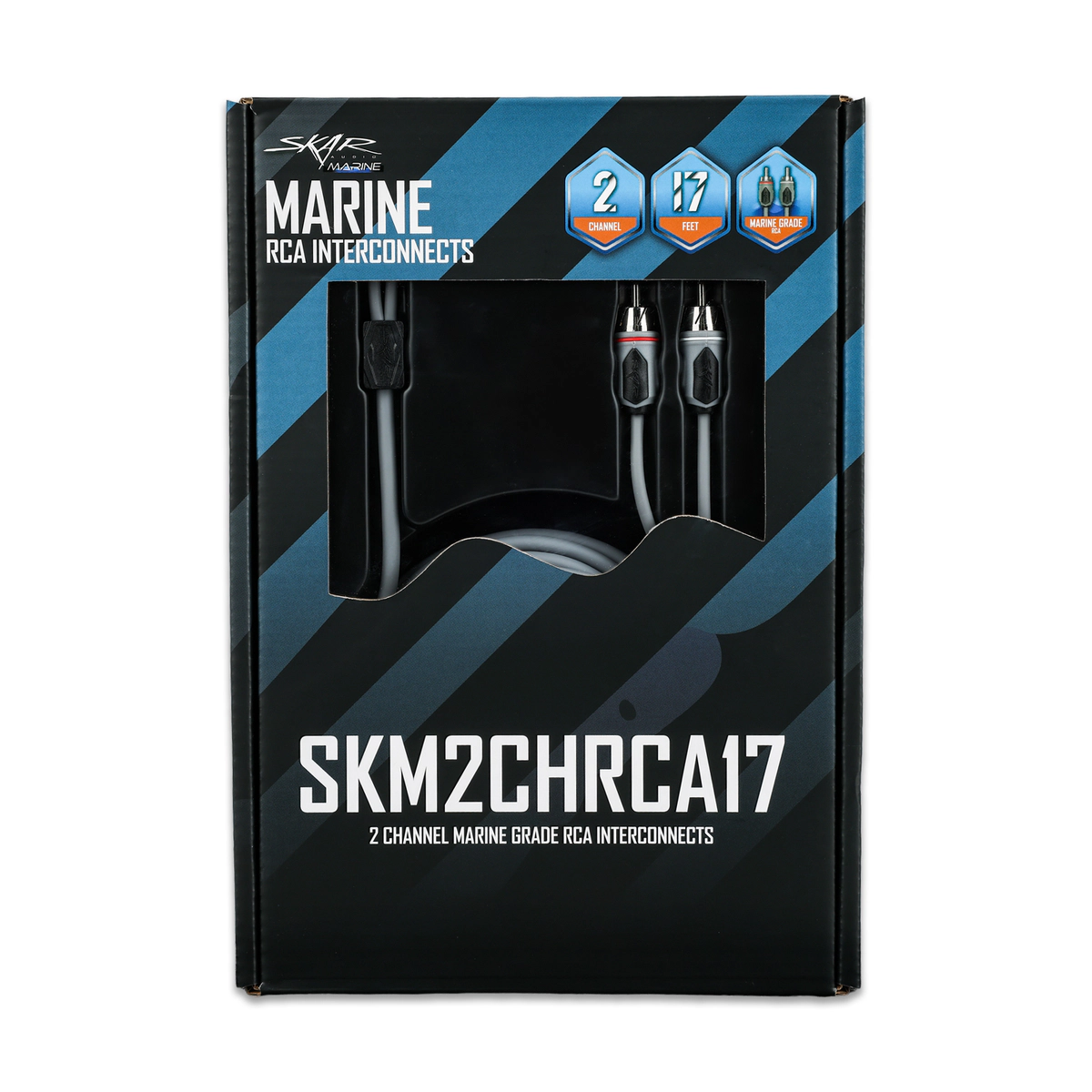 The Skar Audio SKM2CHRCA17 is a marine-grade, 17 ft, 2-channel RCA interconnect cable engineered for high-quality signal transmission in marine and outdoor installations. Twisted pair construction ensures low noise and superior signal clarity for optimal audio performance. Designed with corrosion-resistant connectors and a durable, element-resistant jacket, the SKM2CHRCA17 stands up to moisture, salt air, and vibration. Ideal for larger boats and complex installs, it delivers dependable performance in demanding conditions. - 17 Ft 2-Channel RCA Interconnect Cable - Marine Grade - Designed to Withstand Salt, Sun, and Moisture - Matte Grey Finish with Max Flex Jacket for Ultimate Wire Flexibility - Utilizing 99.99% Oxygen Free Multi-Strand Copper Wire Construction - Locking Split-tip Connectors Allow for Better Signal Transfer - Precision Machined Metal Ends (with Red & White Band Identifiers) - Silver-Plated Copper Conductors Help Provide Best Possible Sound - Advanced Shielding Increases Noise Rejection (Engine Noise, etc)