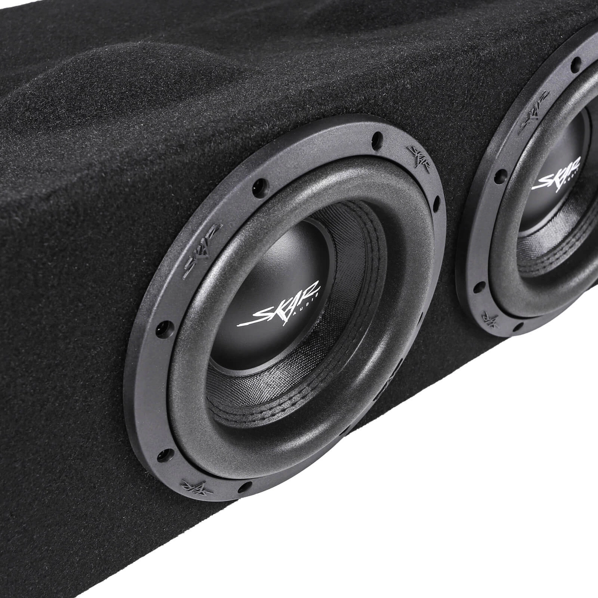 The Skar Audio Quad 8" 3,200W Max Power Loaded Subwoofer Enclosure Compatible with 2017-2025 Ford Super Duty (F-250/350/450) SuperCrew Cab Trucks is a car audio equipment made by Skar Audio. View full specifications and where to buy on this page.